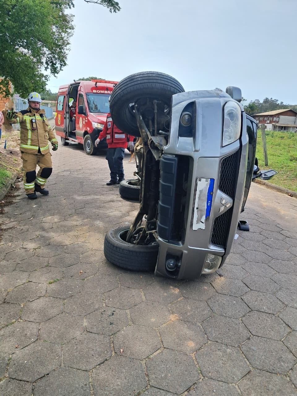 Nesta segunda-feira (15), um acidente de trânsito surpreendeu a equipe do Corpo de Bombeiros Voluntários de Jaguaruna, ocorrido na via ao lado da corporação.