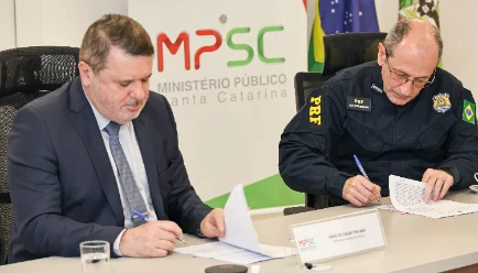 O Ministério Público de Santa Catarina (MPSC) e a Polícia Rodoviária Federal (PRF) renovaram um acordo de cooperação técnica para a manutenção da parceira no Grupo de Atuação Especial de Combate às Organizações Criminosas (GAECO) em Santa Catarina. O acordo foi assinado pelo Procurador-Geral de Justiça, Fábio de Souza Trajano, e pelo Superintendente da PRF em Santa Catarina, Manoel Fernandes Bitencourt, nesta quinta-feira (15/8) na sede do MPSC, em Florianópolis.