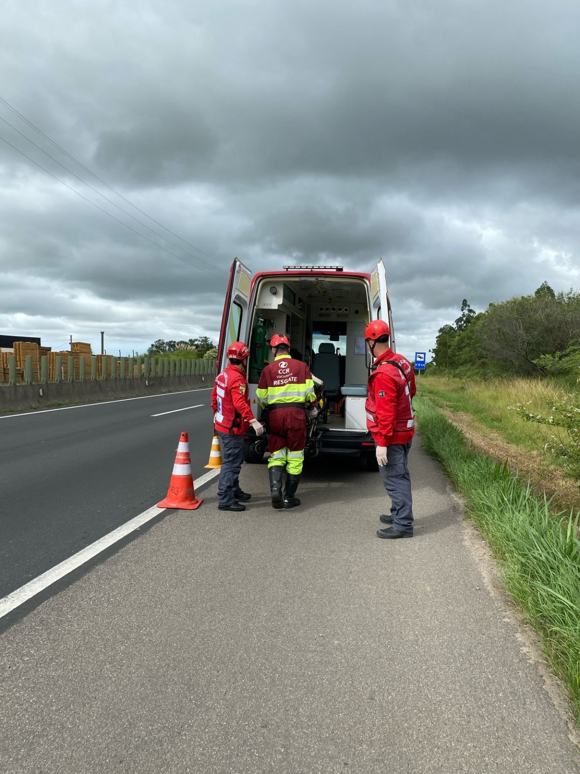O mesmo não apresentava ferimentos, apenas um edema no antebraço esquerdo, assinou recusa de transporte ao hospital. Já a passageira, de 28 anos, encontrava-se caída no acostamento da via, reclamando de dor na coxa esquerda. Além disso, apresentava suspeita de fratura no punho esquerdo e escoriações pelo corpo.