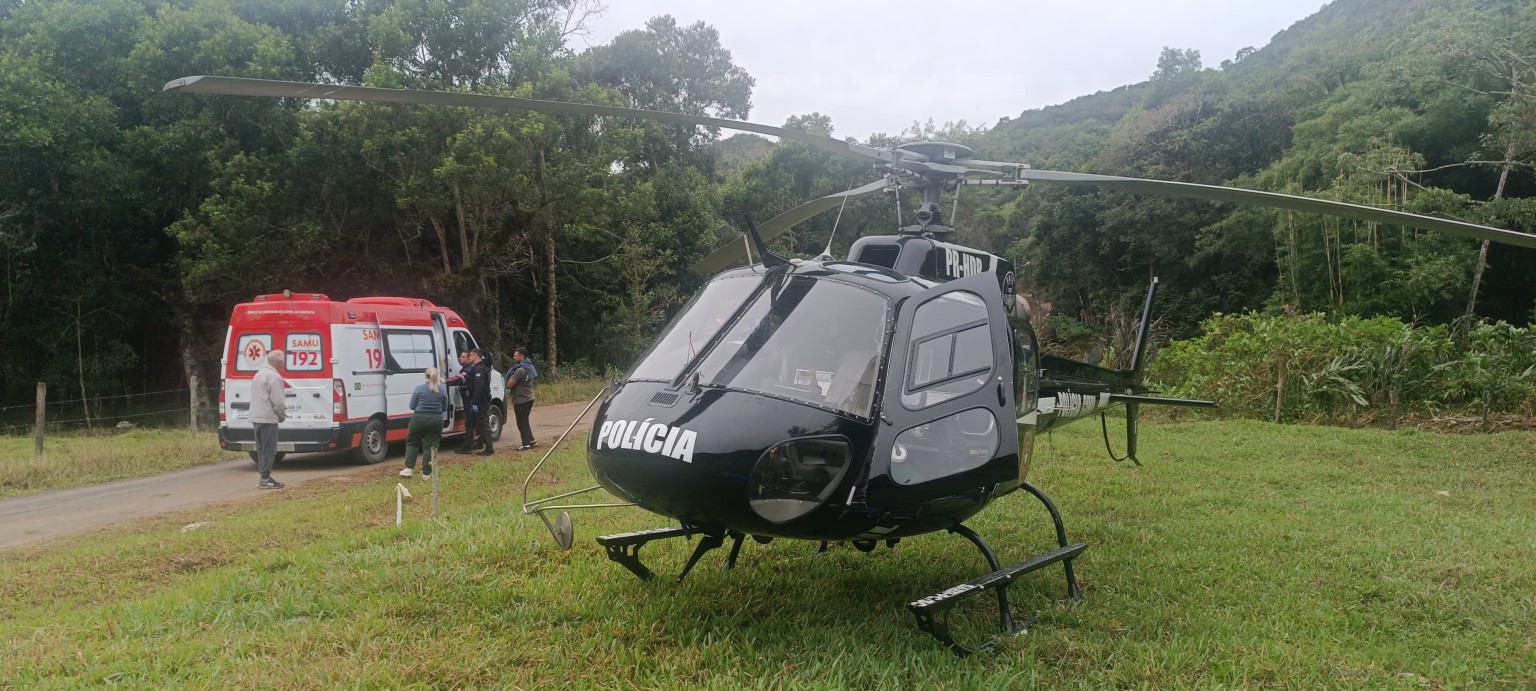 Foi medicada no local, e após imobilização foi transferida de helicóptero para Criciúma, onde foi conduzida ao hospital São José, referência em trauma na região.