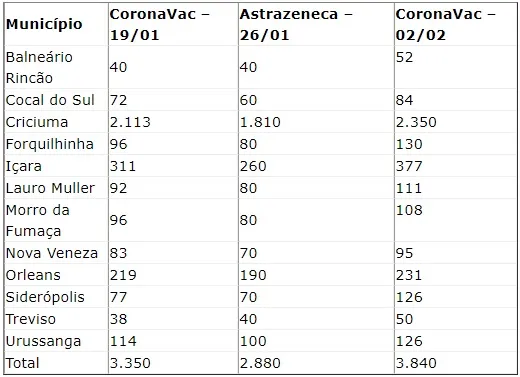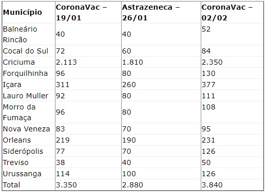 A Gerência Macrorregional de Saúde de Criciúma recebeu nesta terça-feira, dia 3, o terceiro lote de vacinas Coronavac que já estão sendo distribuídas aos 12 municípios da região carbonífera. No total são 3840 novas doses, totalizando 10.070.