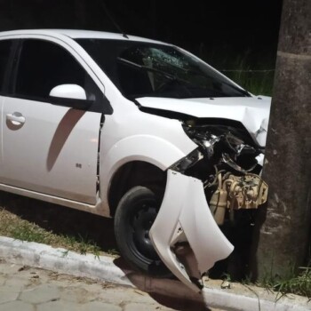 Um carro colidiu contra um poste na noite deste sábado (14), por volta das 22h40, na Rua Gericó, no bairro Riachinho, em Jaguaruna. De acordo