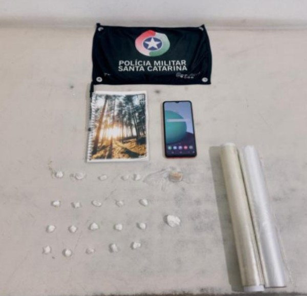 No bairro Jardim das Avenidas, em Araranguá, após denúncias, policiais foram até uma residência suspeita de funcionar como ponto de venda de drogas. A proprietária do imóvel, uma mulher de 45 anos, autorizou a entrada da guarnição. Com o apoio do cão farejador do K-9, foram localizadas 21 buchas de cocaína e uma pedra de crack escondidas em um tênis, embaixo da cama. Em outro quarto, dentro de uma caixa de sapatos, os policiais encontraram rolos de plástico utilizados para embalar drogas e um caderno com anotações da comercialização. A mulher foi conduzida juntamente com o material apreendido.