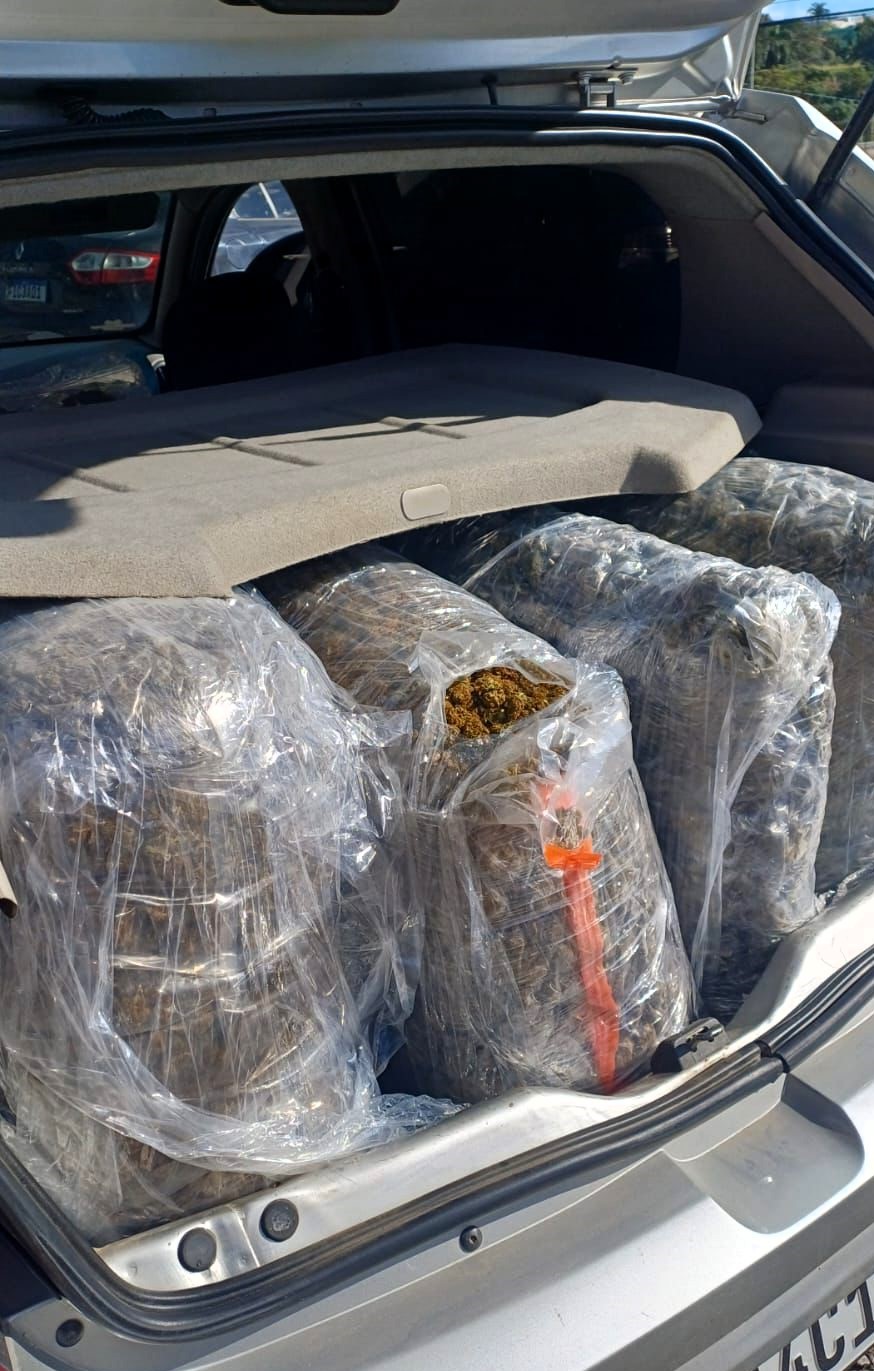 O carregamento de skunk, um tipo de maconha mais potente (com maior concentração de substâncias psicoativas), foi encontrado no porta-malas e também no banco de trás do carro, coberto por uma manta. Além do entorpecente, os agentes também localizaram um quilo de metilenodioximetanfetamina (MDMA ou ecstasy).