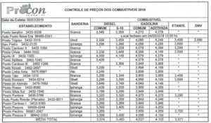 Os dados indicam que o preço mínimo encontrado para a gasolina comum foi de R$3,89, máximo de R$ 4,09; para a gasolina aditivada de R$ 3,94; para o diesel foi de R$ 3,19; e para o diesel S-10 foi de R$ 3,22. “Na compra de produtos ou serviços, tais quais os combustíveis, deve-se exigir sempre a nota fiscal. Em caso de constatação de alguma irregularidade, o consumidor deve levar o comprovante ao Procon, para que possamos tomar as medidas cabíveis”, orientou a diretora executiva do Procon Içara, Karoline Calegari.