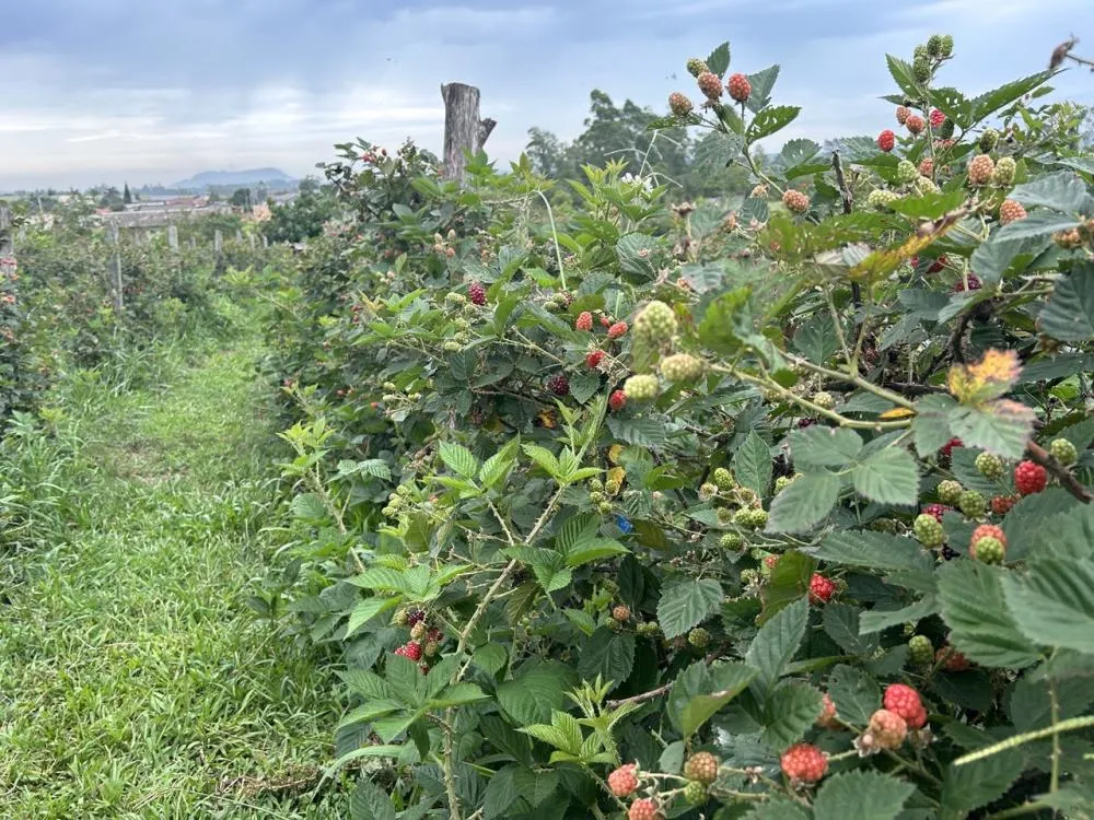 A amora, do tipo Tupy, também é uma das apostas do produtor Tiago Mazzuchello. Plantada em uma área de meio hectare, ela já ocupa 3,5 mil pés produtivos, aos quais recentemente foram somados outros cinco mil. A expectativa é colher cerca de seis toneladas da fruta este ano.