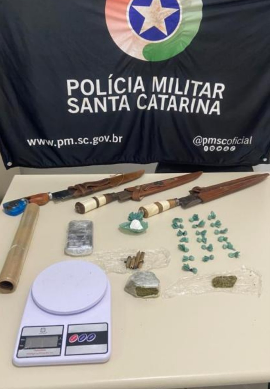 A Polícia Militar prendeu dois homens, ambos de 26 anos, por tráfico de drogas, associação para o tráfico e receptação de veículo furtado em Passo de Torres. A ocorrência foi registrada nesta terça-feira (23), no centro da cidade.