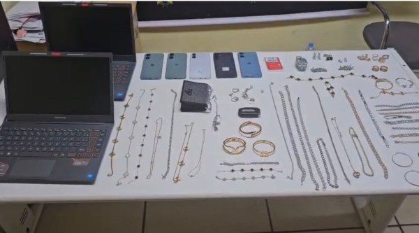 Durante as diligências, foram apreendidos um veículo Jeep Compass, joias, relógios, computadores e aparelhos celulares.