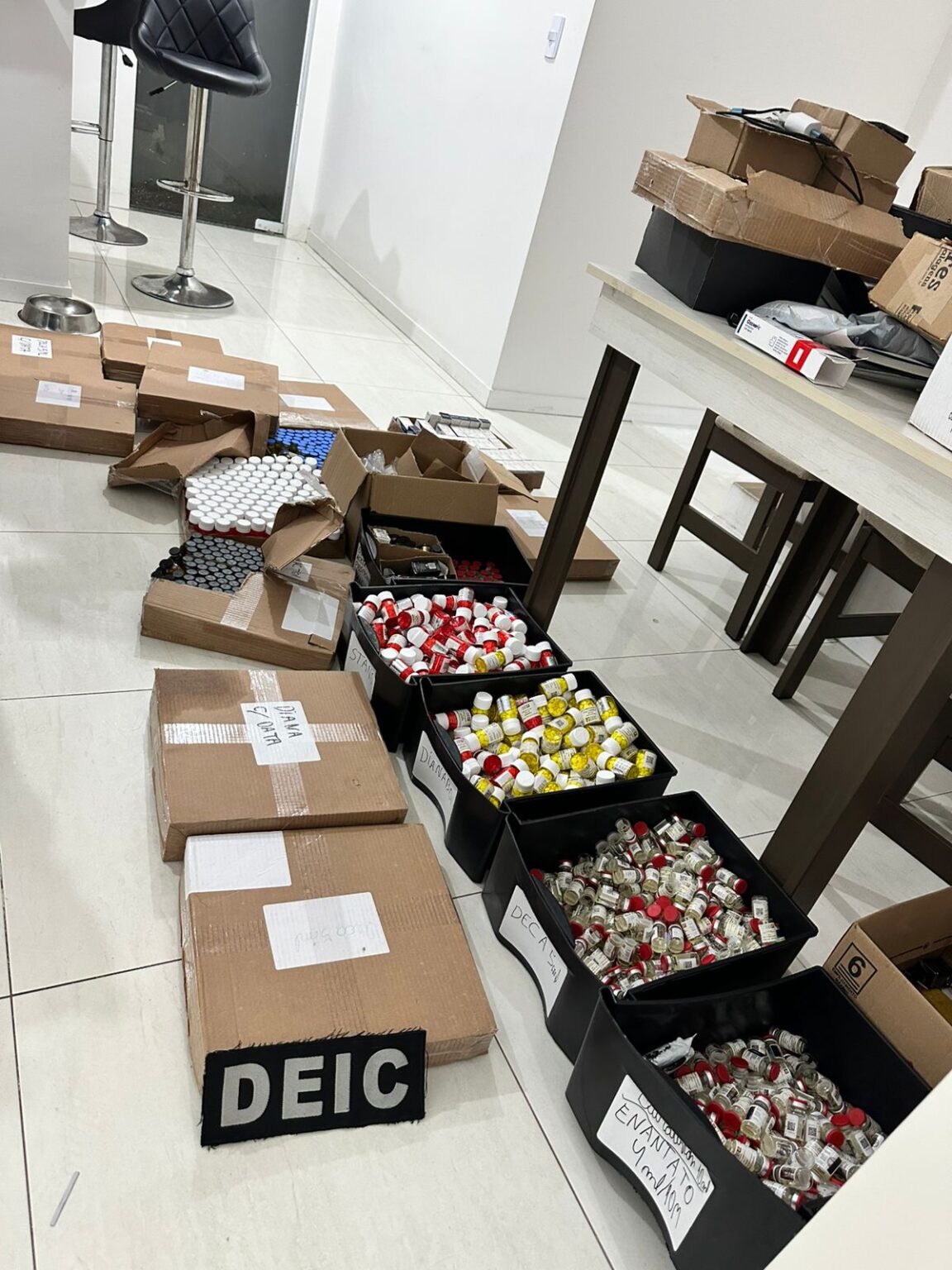 A operação visa desarticular um grupo criminoso especializado em falsificar, adulterar e comercializar anabolizantes e medicamentos de alto valor, crime cuja pena prevista é de 10 a 15 anos de reclusão e também é tipificado como hediondo pelo ordenamento jurídico. Durante as diligências, uma pessoa foi presa por cumprimento de mandado e em flagrante e outra em flagrante.
