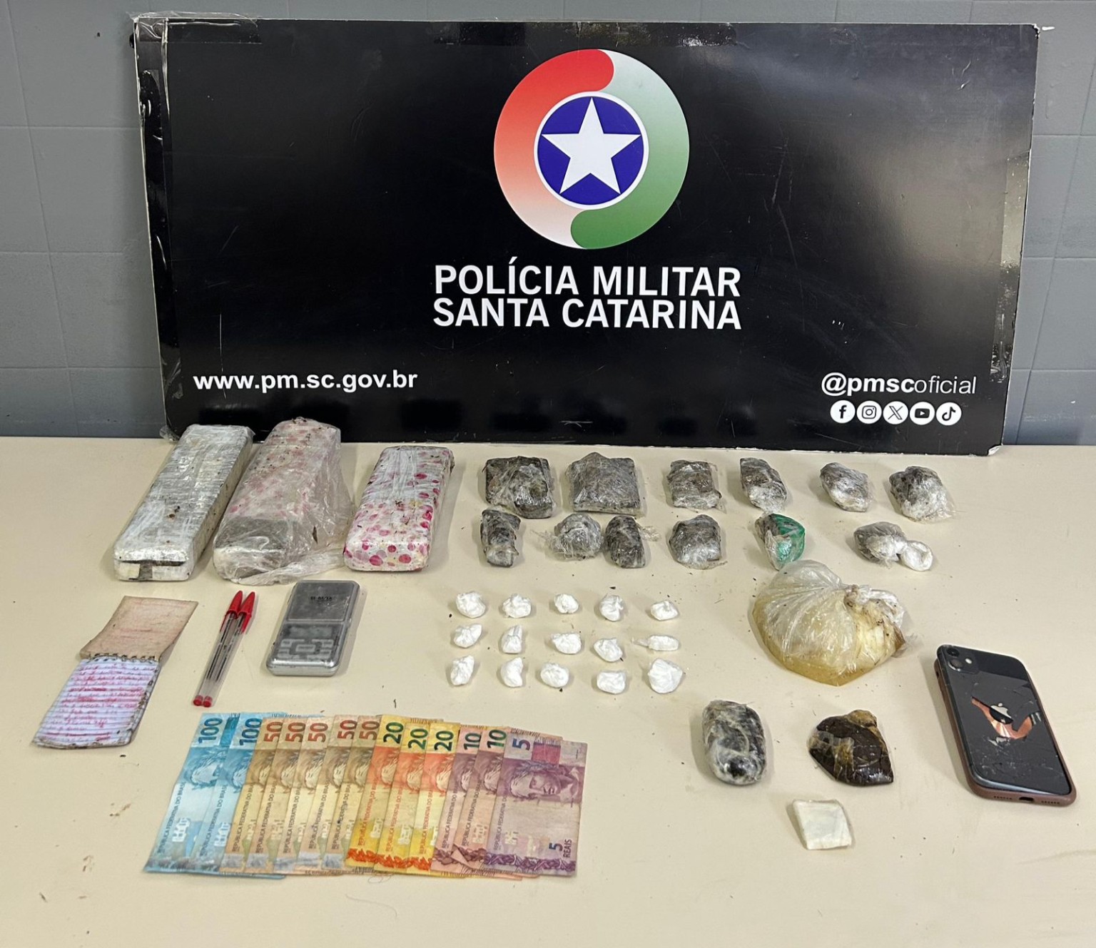 A Polícia Militar realizou, neste domingo (01), uma importante ação de combate ao tráfico de drogas no município de Forquilhinha, resultando na apreensão de expressiva quantidade de entorpecentes e na recaptura de um foragido do sistema prisional.