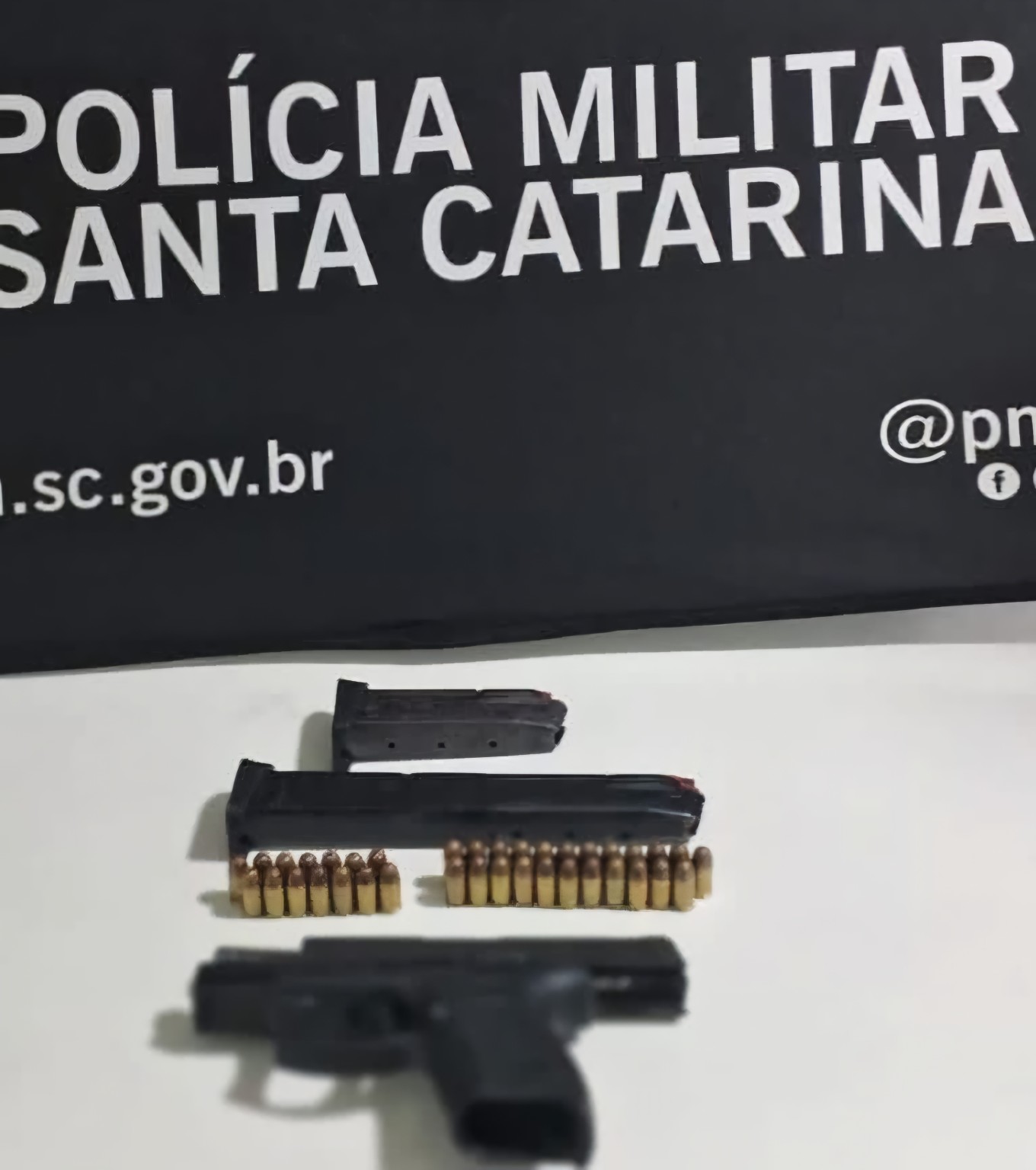 A arma Taurus calibre 380 havia sido furtada em 2016. Juntamente com a arma haviam 37 munições, um carregador normal e um carregador alongado.
