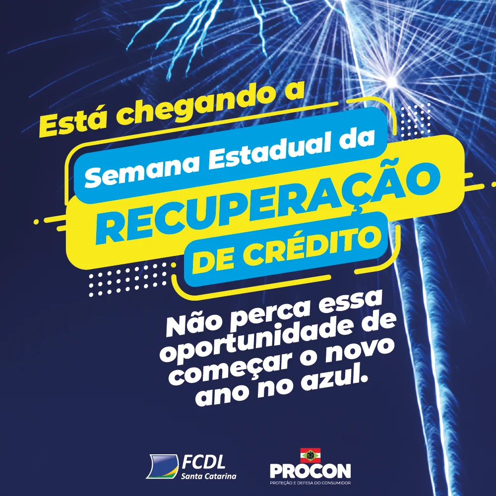 O Procon de Santa Catarina, vinculado à Secretaria da Indústria, do Comércio e do Serviço (Sicos), apoia a Semana Estadual da Recuperação de Crédito da Federação das Câmaras de Dirigentes Lojistas (FCDL) , que vai ocorrer entre 4 e 9 de dezembro. As Câmaras de Dirigentes Lojistas (CDL) do estado vão receber os consumidores que estejam cadastrados no SPC em razão de dívidas não quitadas.