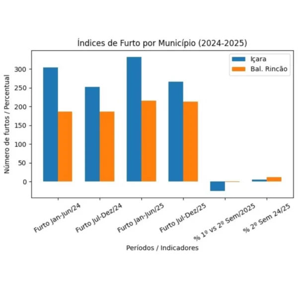 Entre os dados, chama atenção a queda de aproximadamente 40% nos casos de furto em relação ao período anterior, além da diminuição nos índices de roubos e homicídios.