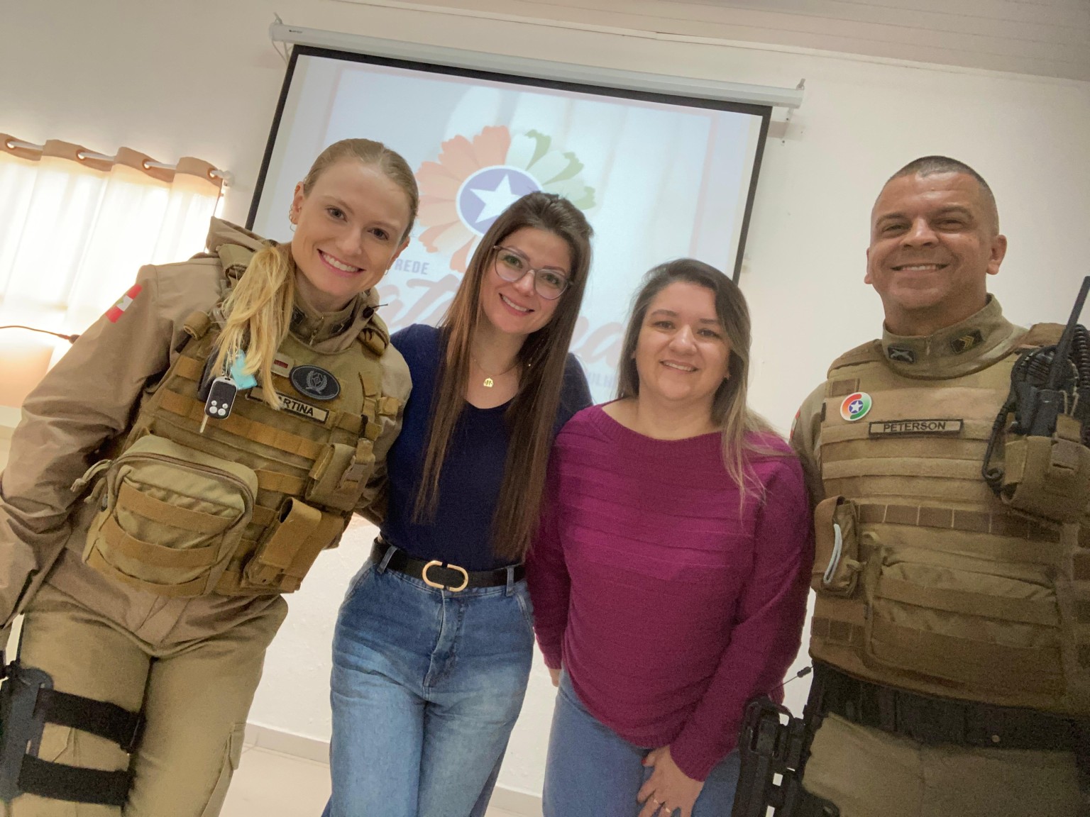 O programa preventivo Rede Catarina do 9ºBPM, composto pelo Sgt Peterson e a Cb Martina, ministraram orientações ao público presente. O objetivo foi capacitar estas pessoas a reconhecerem sinais de violência – seja física, psicológica, sexual, patrimonial ou moral – e entender os caminhos para buscar ajuda e proteção.