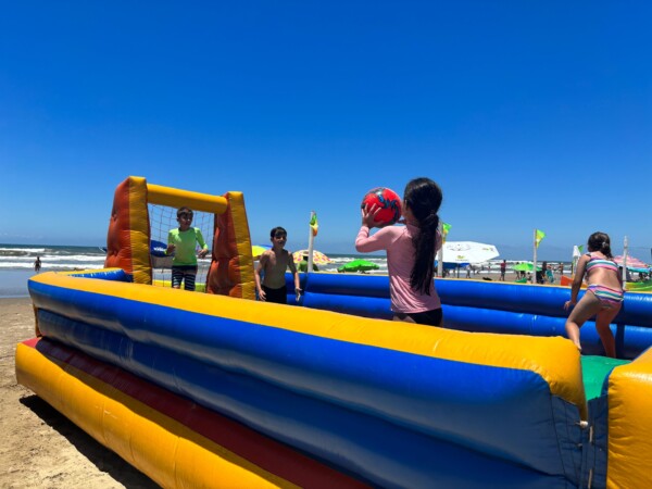 A arena montada na orla conta com espaços dedicados a diferentes públicos, oportunizando diversão para todas as idades. Alice Donato da Roza levou toda a família para curtir o Verão Unesc. “Vim com meu esposo e minhas três crianças e amamos participar das atividades na praia. Não só as crianças, mas eu e meu marido também nos divertimos muito hoje. Muita gratidão à Unesc”, declara.