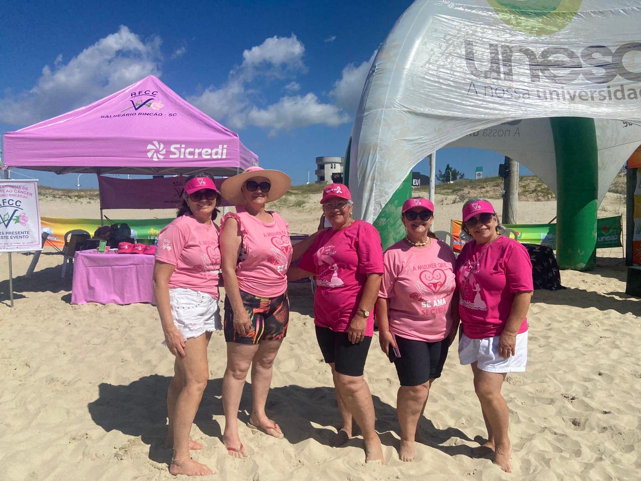 No primeiro dia do Verão Unesc 2025, um dos destaques da programação foi a participação da Rede Feminina de Combate ao Câncer que levou para a orla do Rincão uma série de ações voltadas à conscientização sobre a prevenção do câncer. Vandete Maria Fernandes, Presidente da Rede Feminina de Combate ao Câncer de Balneário Rincão destacou que a parceria com a Unesc é preciosa. “Tem sido uma oportunidade muito importante estar com nossa tenda aqui no Verão Unesc. Vamos estar o mês todo com nossas voluntárias divulgando nossas ações, falando da prevenção do câncer de mama e colo de útero. Hoje na abertura conversamos com as mulheres prestando orientações sobre a importância de consultas regulares e exames preventivos, fatores essenciais para a detecção precoce de diversas doenças. A Rede Feminina e a Unesc juntas formam uma parceria forte que dá certo”, afirma.