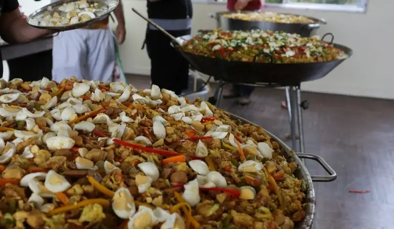 Criada para gerar recursos para manter e ampliar programas sociais, a paella se tornou tradição na comunidade. Ao longo dos anos, o evento se reinventou para garantir sua continuidade: já foi realizado em espaços como o Nações Shopping e o estádio Heriberto Hülse, e, em edições recentes, adotou o formato drive-thru para facilitar a logística. Em cada edição, centenas de kits são preparados e distribuídos com a ajuda de dezenas de voluntários.