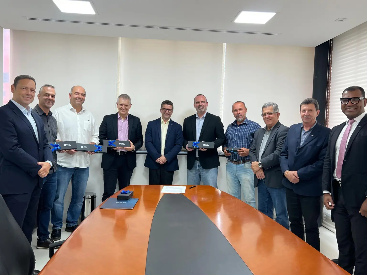 Por parte da FCDL/SC, José Manoel Ramos, Vice-Presidente de Assuntos Públicos e Políticos, José Carlos Benini, Vice-Presidente de Serviços, Arnaldo Sousa, Superintendente Institucional e Jhonatan Roberto da Silva, consultor da FCDL/SC.