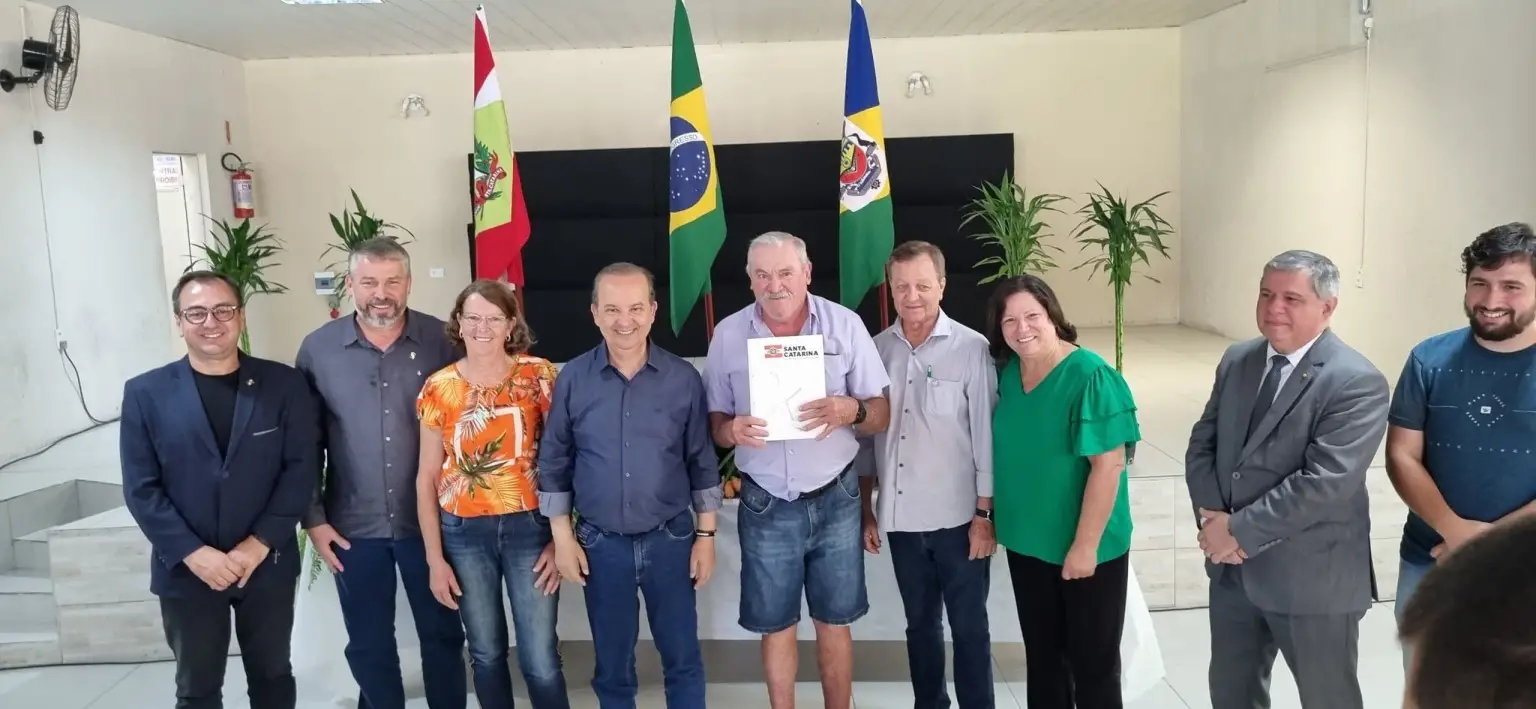 Legenda foto: Entrega de títulos de propriedade, em setembro de 2023, para agricultores da região da grande Florianópolis, em Biguaçu