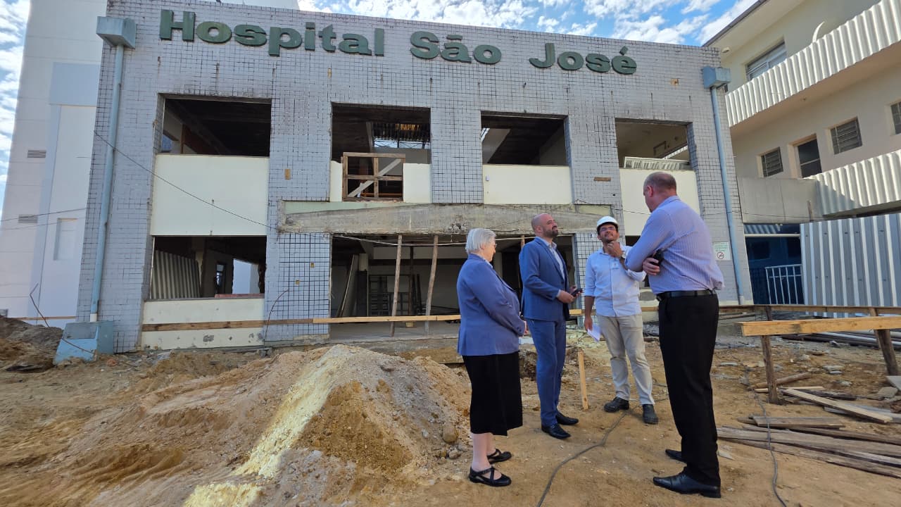 A programação iniciou com uma reunião técnica entre a equipe diretiva do hospital, médicos da instituição, o presidente do conselho consultivo do HSJosé, Valcir Zanette, além de representantes do Governo do Estado, onde foram discutidos avanços, desafios e oportunidades de ampliação dos serviços prestados. Na sequência, o secretário conheceu de perto o andamento das obras de revitalização da nova recepção SUS da instituição, que contam com investimento de R$ 8,9 milhões do Governo do Estado, além de R$ 1,8 milhão viabilizados por meio de emenda parlamentar do deputado federal Ricardo Guidi.