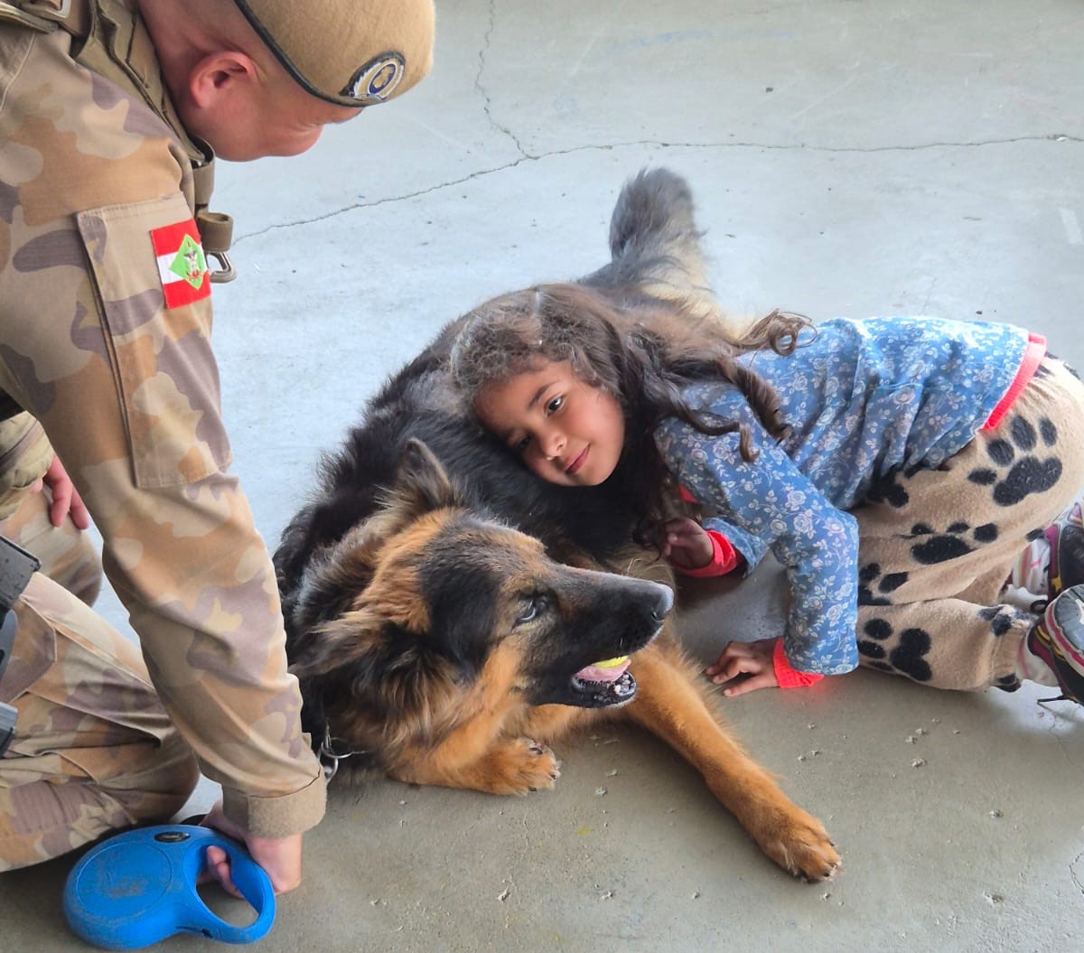 A iniciativa teve como foco a prevenção da violência na infância, promovendo a construção de vínculos positivos com profissionais da segurança pública e o estímulo ao respeito e à convivência. A Kira, uma fêmea treinada em guarda, proteção e cianotecnia, já é experiente em lidar com crianças em ações educativas na região.