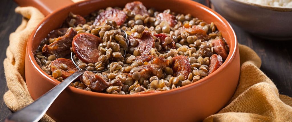 Lentilha com costelinha de porco e linguiça