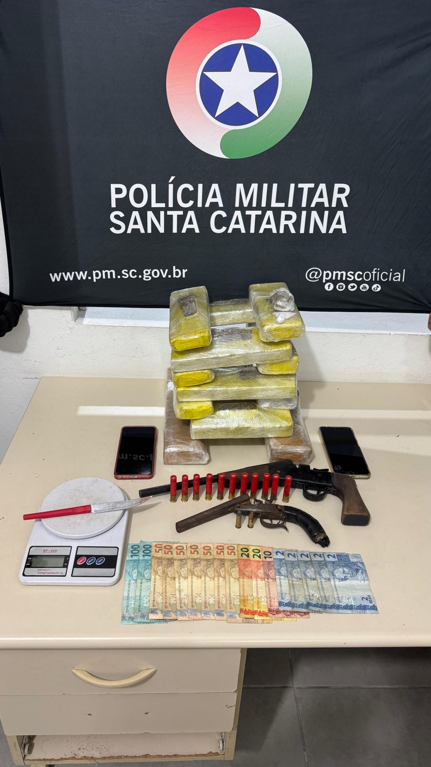 No interior do apartamento, conhecido por ser ponto de tráfico, os policiais encontraram maconha e cocaína, além de uma mochila contendo mais de 1,9 kg de maconha, duas armas de fogo de fabricação artesanal, munições e uma balança de precisão. Em outro cômodo, dentro de uma caixa térmica, foram encontrados mais de 2 kg da droga. Ainda foram localizados mais de 4 kg de maconha escondidos em uma mala no quarto.