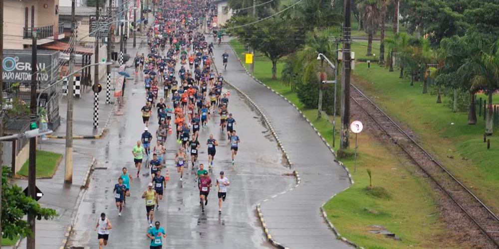 O amanhecer chuvoso impôs um desafio extra, mas não impediu o número recorde de participantes da Corrida CDL de Içara – Fomentando o Turismo –