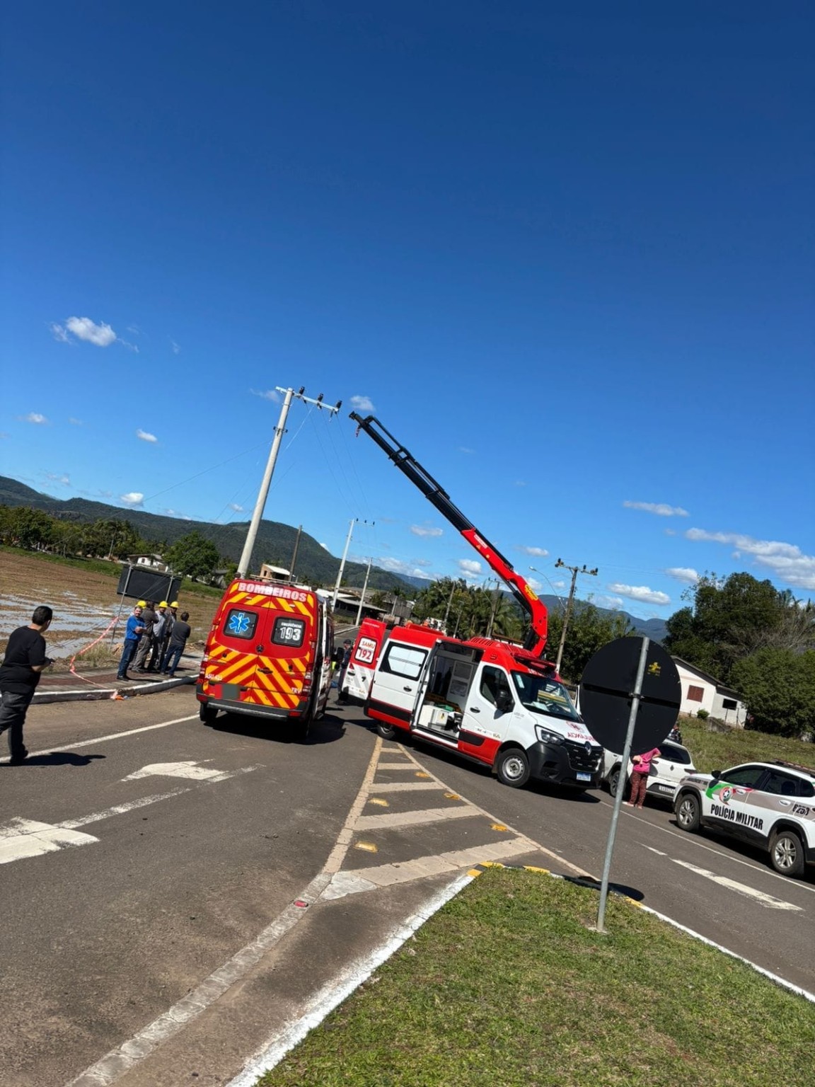 Segundo informações do Corpo de Bombeiros de Turvo, a guarnição foi acionada pela Central de Operações Bombeiro Militar (COBOM) para atendimento de uma queda de nível. Ao chegar ao local, os socorristas encontraram o funcionário da cooperativa de energia em decúbito dorsal sobre a via, após o cesto em que estava cair durante o serviço.