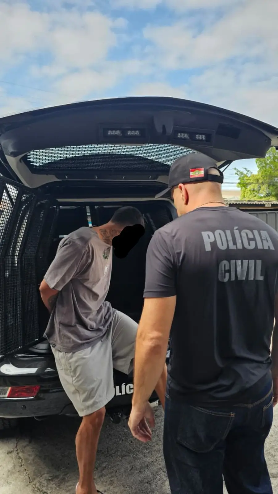 Diante dos fatos, ele recebeu voz de prisão e foi encaminhado, juntamente com o veículo furtado, a droga e os demais itens, à Delegacia de Polícia Civil de Porto União.