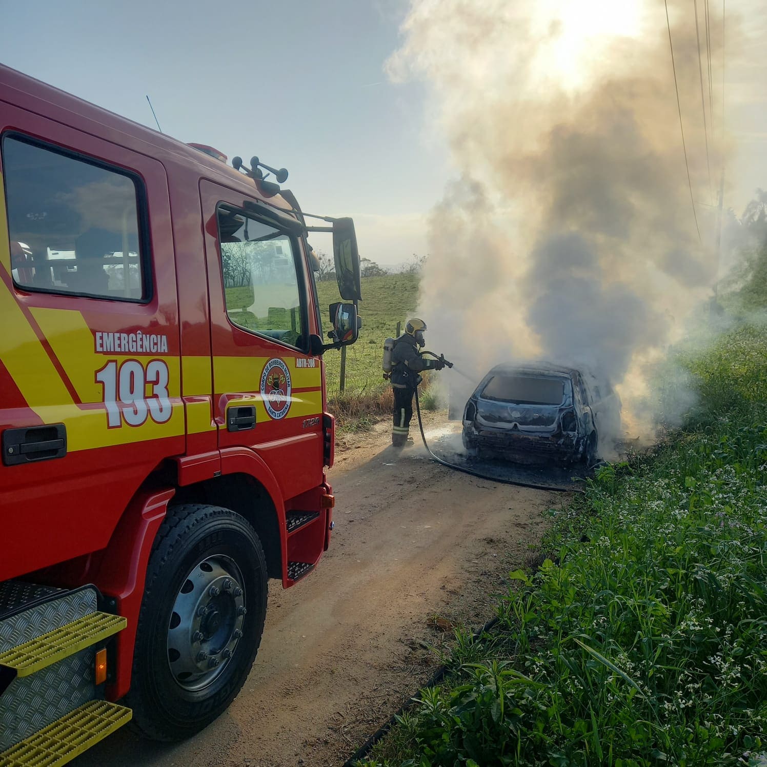 Incêndio em veiculo volkswagen gol foi registrado neste sábado na Rodovia Lorisval Nunes de Mello, bairro Boa Vista, em Içara.