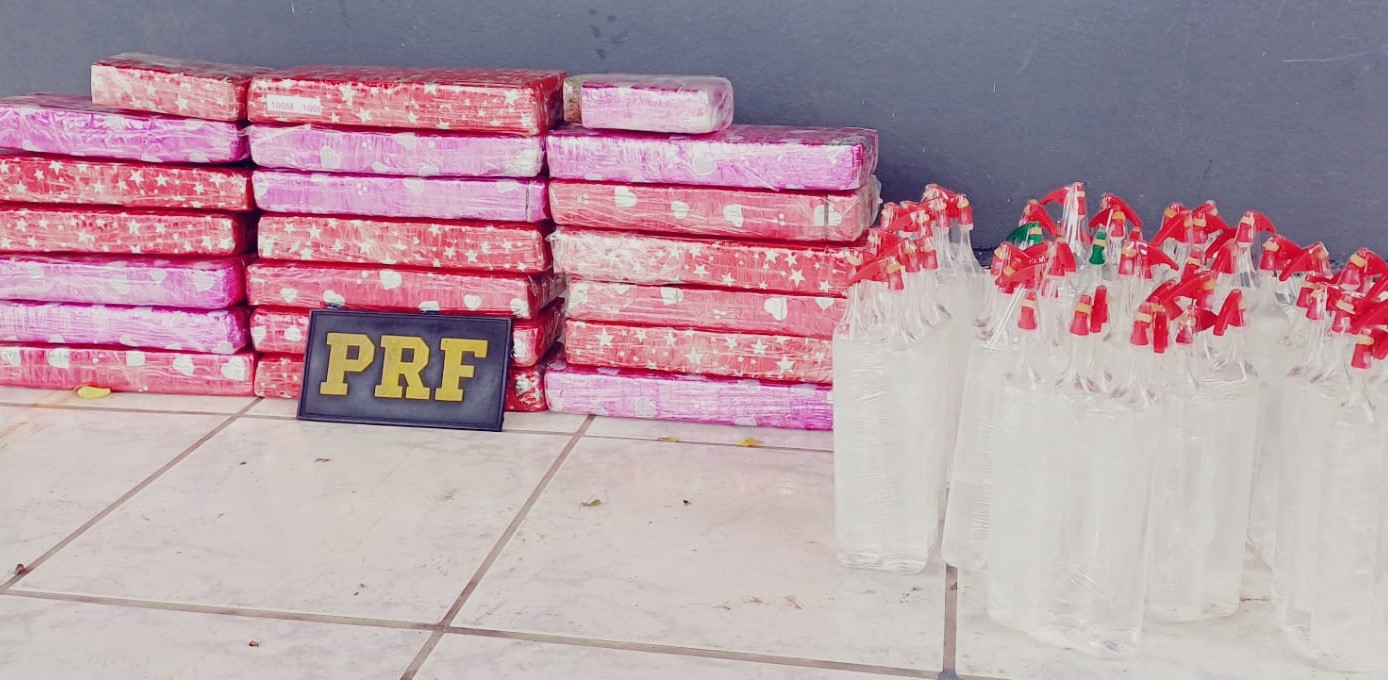 Ao realizar a busca veicular, foram encontrados 13,8 kg de maconha, além de 60 frascos de “lança-perfume” em uma caixa de papelão.