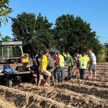 Uma mulher de 59 anos foi resgatada nesta quarta-feira (1º), após ficar com o membro superior preso em uma máquina acoplada a um trator, no município de Içara.