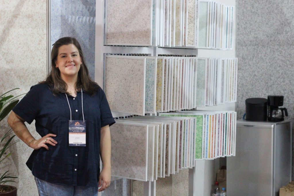 Em sua primeira participação no evento, a empresa está apresentando aos visitantes o Ecopaper, um papel de parede ecológico e que pode ser aplicado por qualquer pessoa. “Um pacote do produto pode ser usado de três a quatro metros quadrados. O papel de parede é preparado com água, em seguida ele fica de molho por 12 horas e está pronto para ser aplicado na parede. É fácil e rápido. Basicamente, é necessário ir esticando ele na parede. Ele fica seco de três a quatro dias”, explica a proprietária da empresa, Thais Kelm.