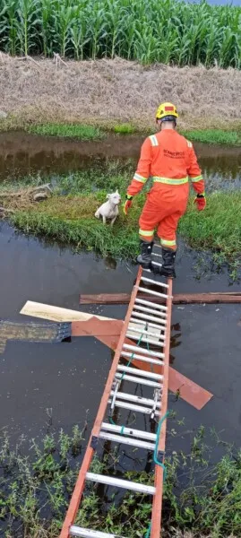 Com o uso de técnicas adequadas e garantindo a segurança da equipe e do animal, a cadela foi resgatada e encaminhada para um local seguro.