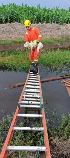 Na tarde desta quinta-feira (2), uma equipe de resgate foi acionada para atender uma ocorrência envolvendo um animal em situação de risco na Rodovia Municipal Pedro Barbosa Lemos, no bairro Jabuticabeira, em Jaguaruna.