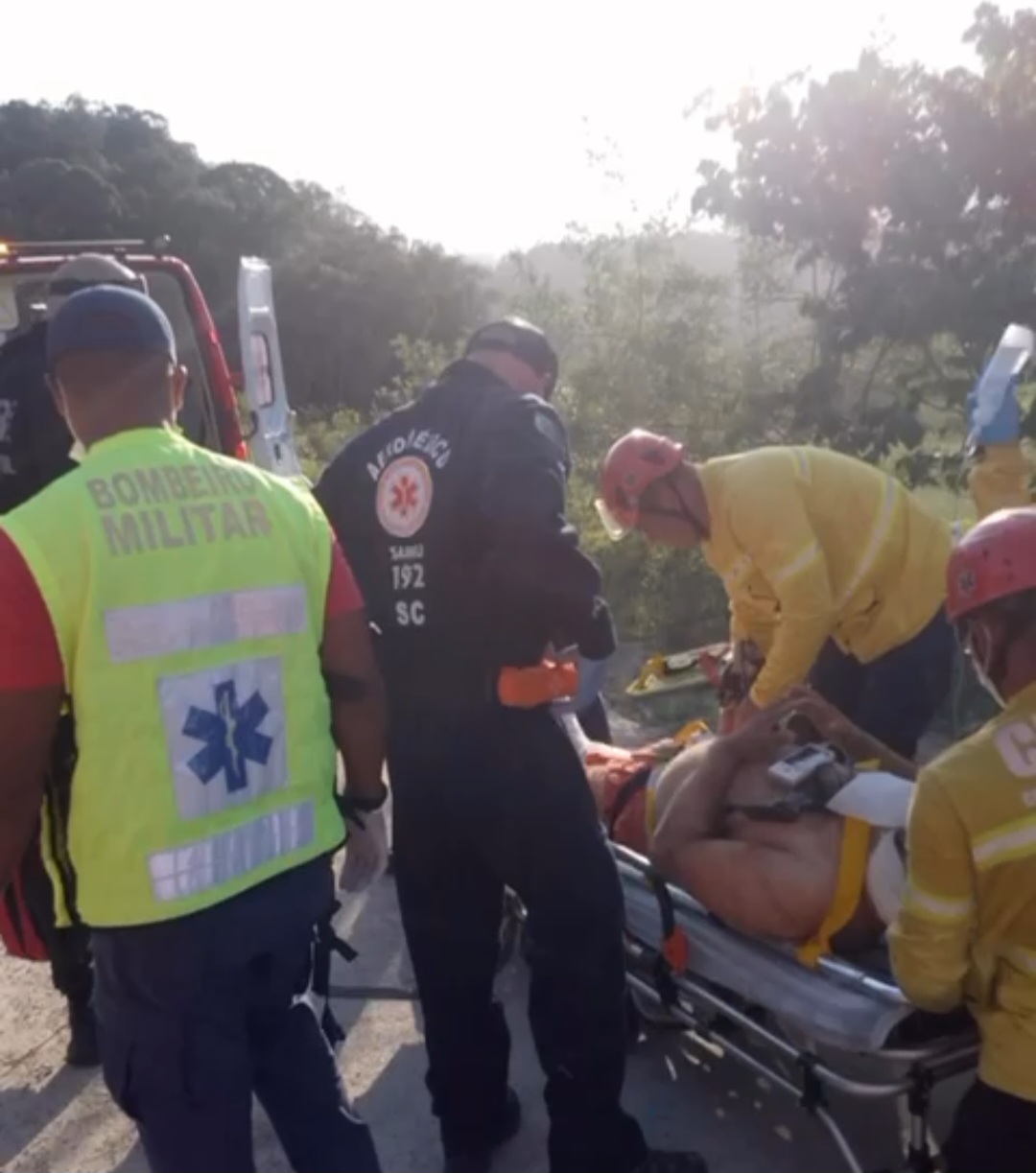 A vítima, um homem de 33 anos, capotou um caminhão de grande porte. Ele sofreu politraumatismos, entre eles provável lesão de coluna, após intervenção médica avançada da equipe e estabilização do quadro, o paciente foi conduzido de até o Hospital São José, em Criciúma , referência em trauma na região.