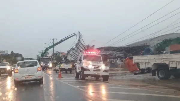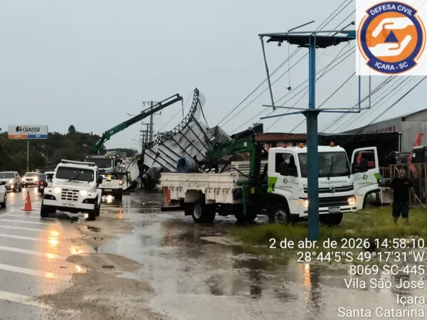 Além dos alagamentos, o vento forte causou danos materiais. Na SC-445, na altura da Vila São José, a estrutura de uma loja de peças cedeu e caiu sobre veículos, gerando prejuízos.