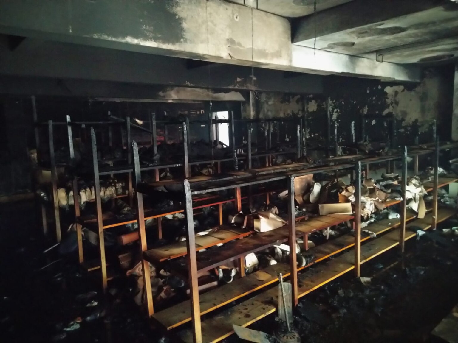 As chamas se concentraram em uma área de aproximadamente 150 metros quadrados, onde havia prateleiras de madeira e caixas de calçados. Um mezanino de madeira de cerca de 9 metros quadrados chegou a desabar durante o incêndio.