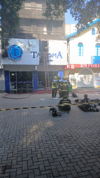 Foram utilizados cerca de 18 mil litros de água no combate e rescaldo, com atuação de quatro linhas de ataque. O fogo também atingiu um apartamento acima da loja, causando danos na porta da sacada e deixando o imóvel tomado por fuligem e calor.