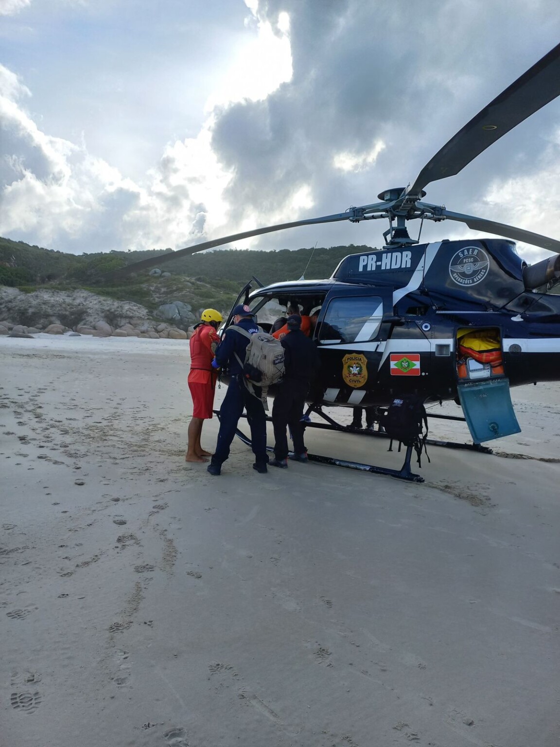 O paciente foi direcionado com a aeronave do Saer para a cidade de Tubarão, onde com o apoio da ambulância dos bombeiros ASU, seguiu para o Hospital Nossa Senhora da Conceição, referência em trauma na região.